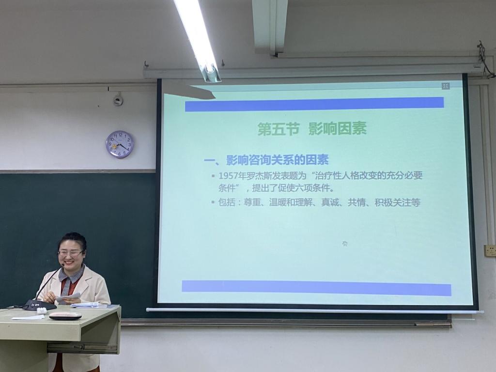吴红敏还讲授了心理咨询的要素,尊重、真诚、共情和无条件积极关注。良好的咨询关系给当事人创造安全温暖的氛围,使当事人产生积极的情感体验,使其最大程度上去表达他自己。在讲解完心理咨询知识后,通过经典案例的角色扮演展开了实战训练,让在场的心理委员们以及心理辅导站的干部干事们体验心理咨询的流程。心理委员在以后的工作中能够运用这些知识更好地服务学生,帮助学生增强心理弹性,建立良好的心理品质,助力学生健康成长。