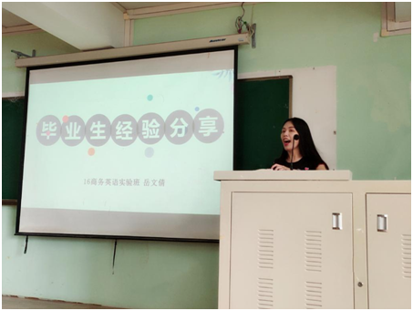 又是一年毕业季,6月21日下午,外语外贸学院在人文艺术楼分不同专业举行了优秀毕业生交流会,按照分别举行了优秀各位优秀毕业生结合各自的毕业去向,向在场的17级与18级师弟师妹们传授经验。