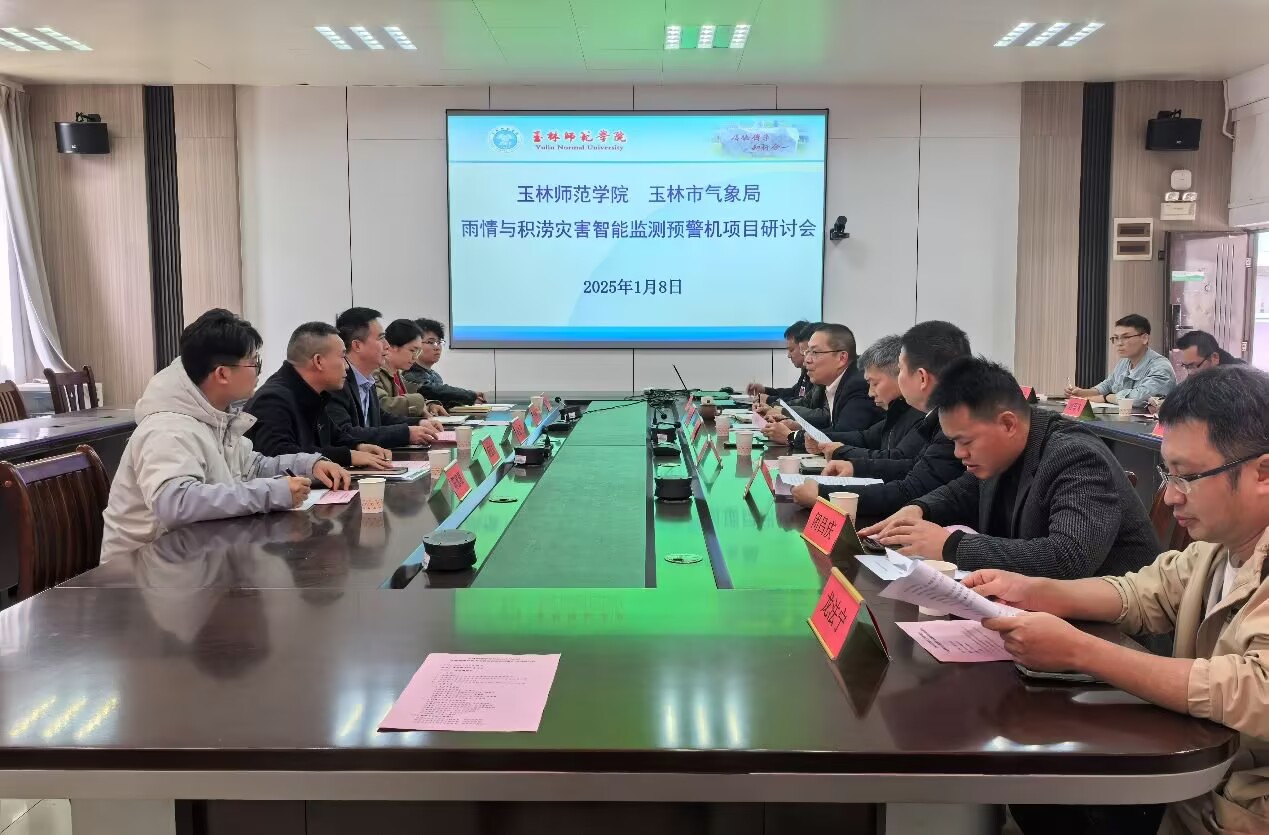 2025年1月8日,我院于我校厚德楼2401会议室与玉林市气象局共同举行雨情与积涝灾害智能检测预警机项目座谈会,我院院长陈佐瓒和物理与电信工程学院副院长田欢欢热情接待了玉林市气象局局长吴益平一行,我院副院长张远夏、彭义春以及两个学院的教师代表参加了本次座谈会,会议由陈佐瓒主持。