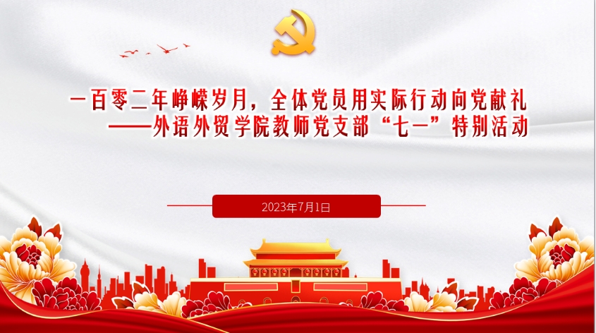 今天是建党102周年,外语外贸学院教师党支部大力弘扬伟大建党精神,激励广大党员同志不忘初心,进一步凝聚起强大的团结奋进力量,立足本职岗位,用不一样的形式庆祝党的生日。