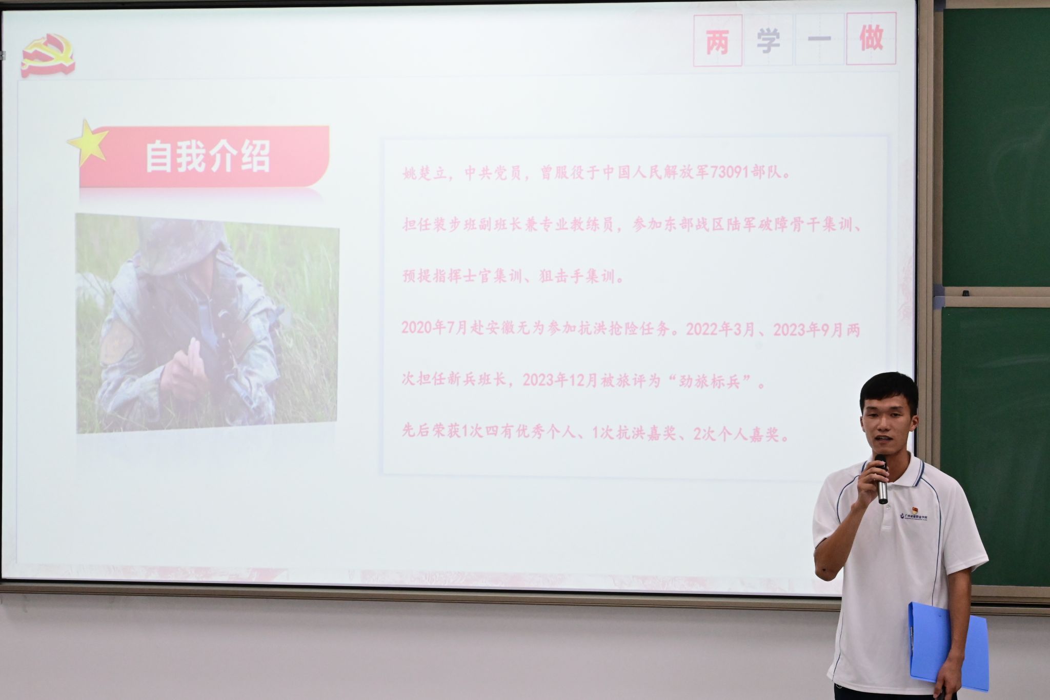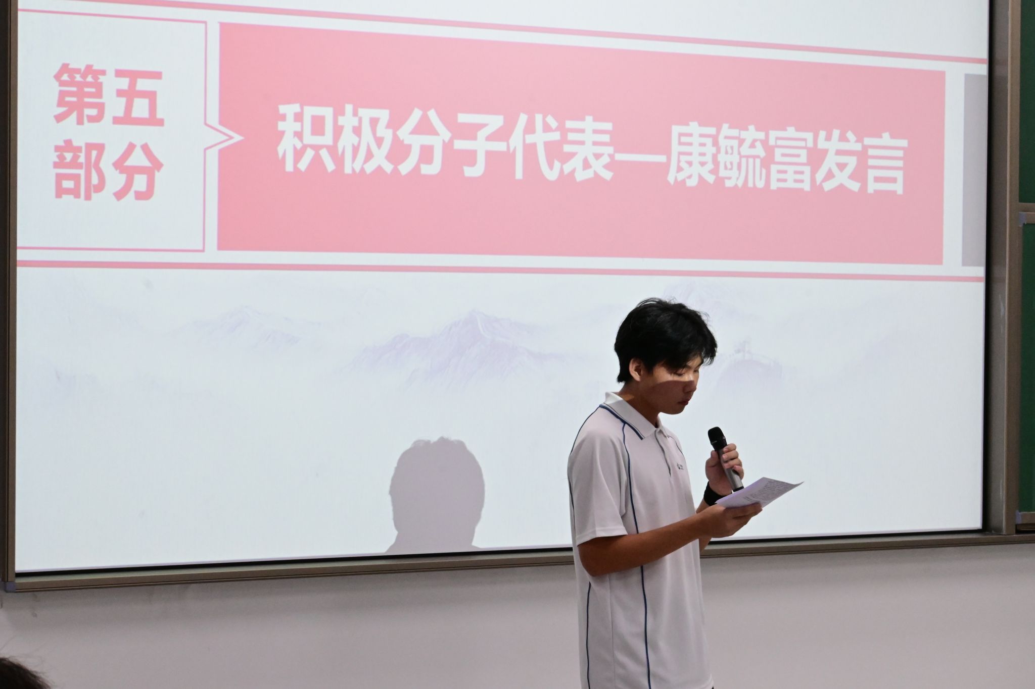 入党积极分子代表康毓富同学作了交流发言。他说到:“领取这本‘六个一工程’活动证,是大家发展党员的起点,也是大家终身学习的开始,我们要以更高的标准来要求自己,进一步坚定初心,坚守初心,以实际行动接受党组织的考验,积极向党组织靠拢,争取早日成为一名光荣的共产党员!”