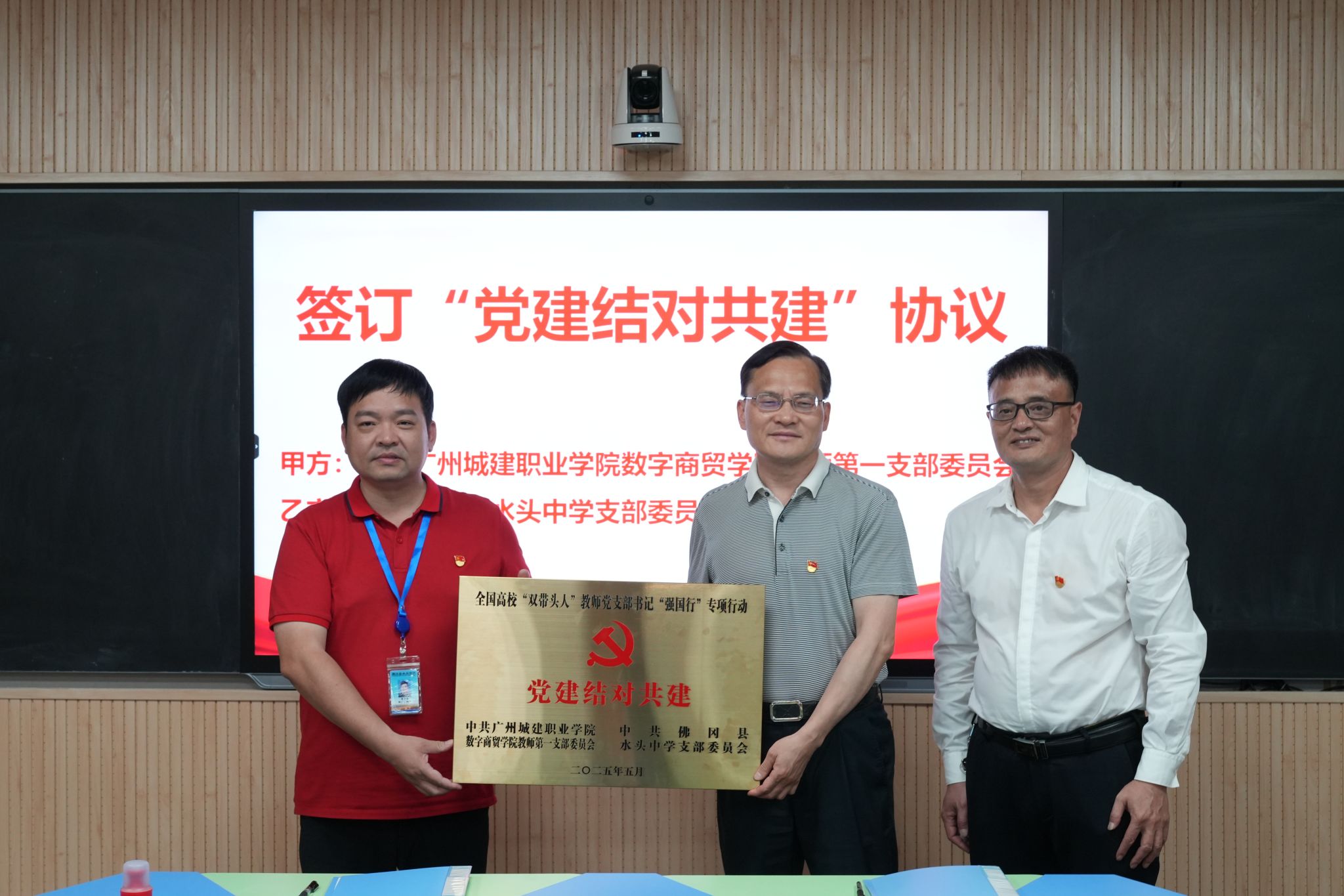 在热烈的氛围中,双方代表签署了《党建结对共建协议书》,并授予党建结对共建基地牌匾。