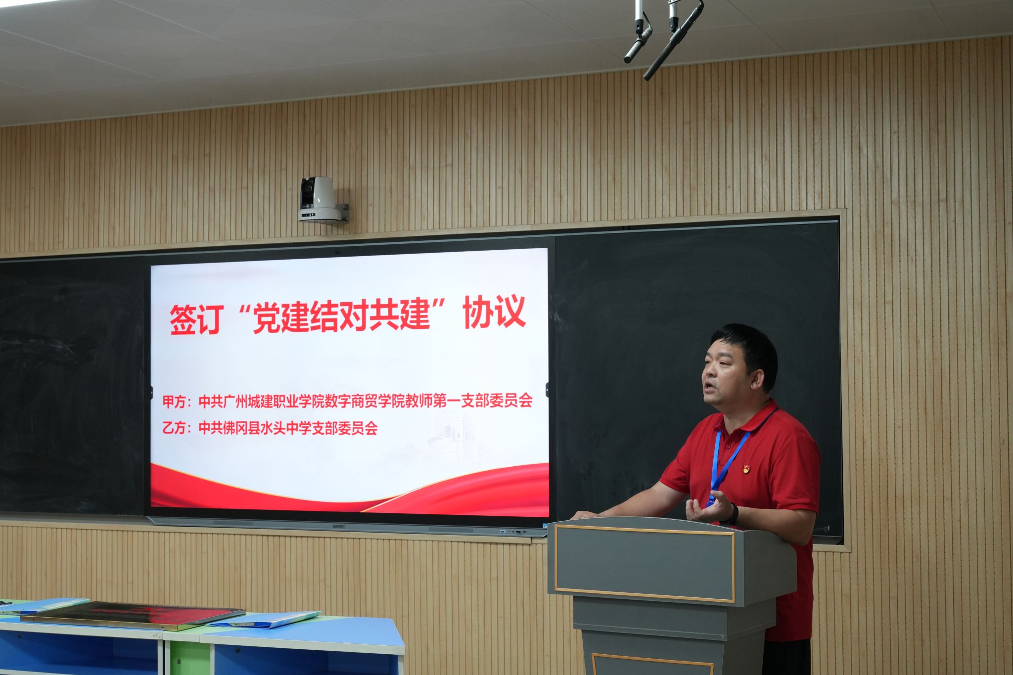 为深入学习党的二十大和二十届二中、三中全会精神,落实习近平总书记关于党的建设的重要思想和全国教育大会精神,持续增强教师党支部的政治功能与组织功能,依托我院全国“双带头人”教师党支部书记“强国行”专项行动计划,充分发挥党建+联学联建,党建+教育服务、党建+实践育人等功能,5月15日,学院与清远市佛冈县水头中学成功举办党建结对共建签约仪式。学院院长颜汉军、教师第一党支部书记李志强等党政领导班子成员及教师代表参加了此次会议。
