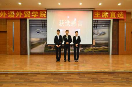 通过本次选举,外语外贸学院第一届第一任学生会主席顺利产生。相信在新当选的团队带领下,外语外贸学院团委学生会的明天必将更加灿烂辉煌!