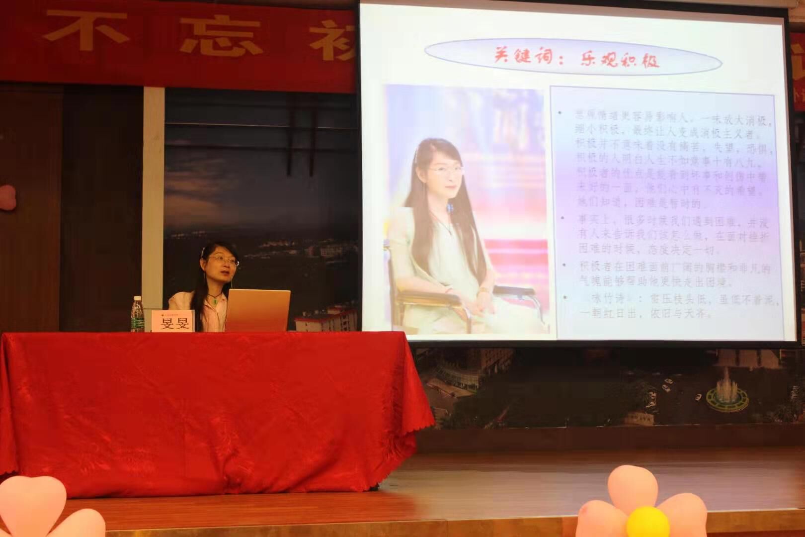 讲座伊始,旻旻老师围绕“生病”“摔跤”“乐观积极”“诗和远方”“感激”“阅读”“幸福”“追梦”等关键词来讲述自己的人生经历。旻旻老师声音平和但充满自信,动作轻柔但充满力量。通过自身波折的经历、列举日常生活中的真实案例,细细地与同学们分享,鼓励新生勇于面对困难与克服困难;引导大家以健康积极的心态面对生活与学习;勉励同学们要坚守初心有梦想就要大胆去追。