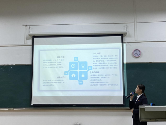 比赛分职业规划阐述和回答问题两个环节。参赛选手结合PPT从自我认识、职业认知、职业生涯规划、制定行动策略、计划修正与备选方案等五个方面进行阐述,评委根据学生的阐述以及规划方案设计进行提问。整个比赛过程紧张有序,学生们的职业生涯规划设计结构完整、逻辑清晰、条理清楚、详略得当、重点突出,职业生涯目标制定贴切合理,演讲过程富有感染力。
