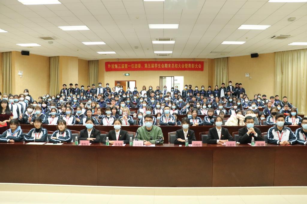 1月14日晚,外语外贸学院团委学生会2020—2021学年第一学期期末总结大会暨表彰大会在建工机电楼101召开,外语外贸学院团委书记孙锦俊、院第三届第一任团委、第五届学生会主席团成员以及全体19级团学干部、20级团学干事出席大会。