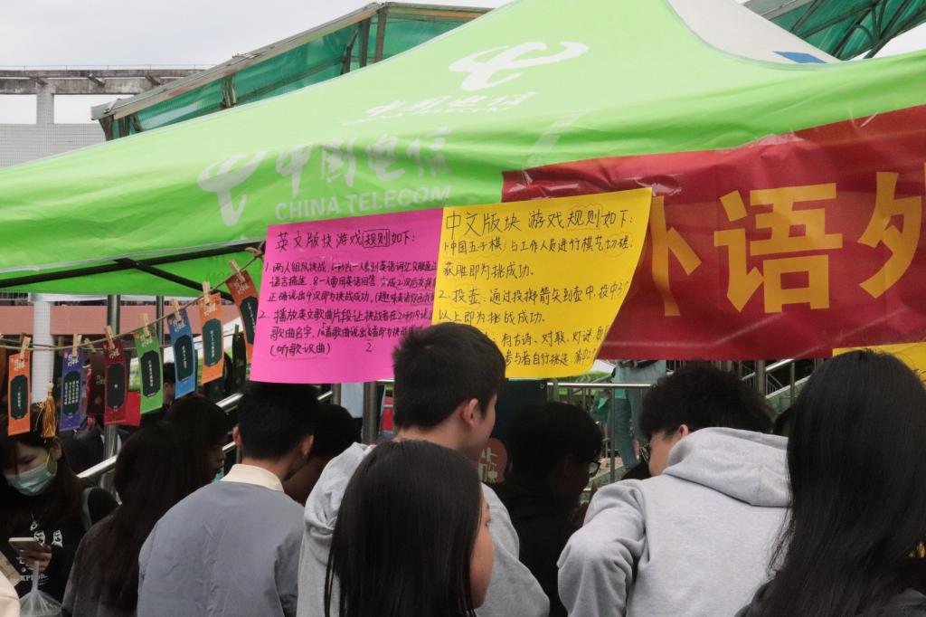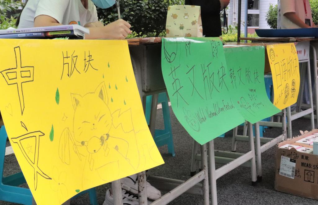 伴随着铿锵有力、热闹非凡的锣鼓阵阵响起,本次活动拉开序幕。本届文化节分为四个板块,分别为英语、日语、韩语和汉语板块。充满异域风情的文化活动以及多国服饰吸引了大批学生驻足观看、踊跃参与,二饭前广场人流涌动,校园文化气氛浓郁。不同板块的活动更是给予大家不同的体验。