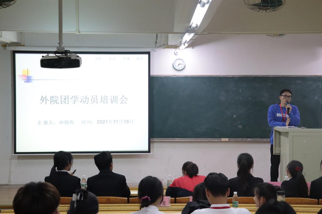 11月19日晚,外语外贸学院第三届第一任团委、第六届学生会动员大会在1305召开。外语外贸学院党委副书记、学工副院长刘榕敏、院团委书记孙锦俊以及全体20级团学干部、21级团学干事参加会议。