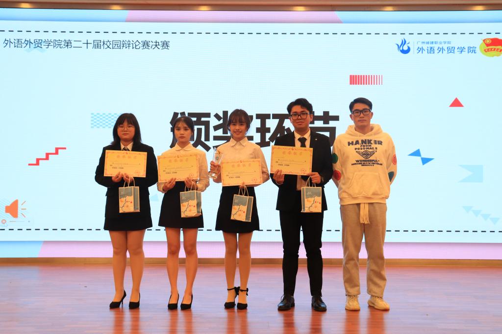最后,谢佳烙同学对此次比赛作了精彩点评,他充分肯定了双方辩手的出色口才,同时也指出了一些有待改进之处:特别是提到立论要稳,驳论要准。最终,“啊对对队”夺得冠军、“杠精大队”夺得亚军、20国贸专升本班的杨荣恒同学获“最佳辩手”称号。