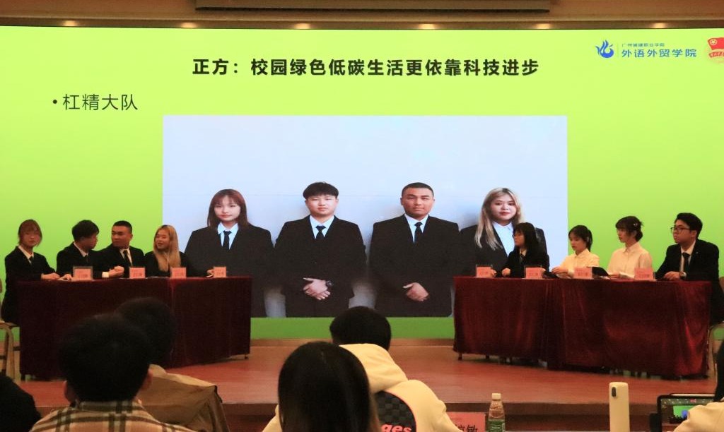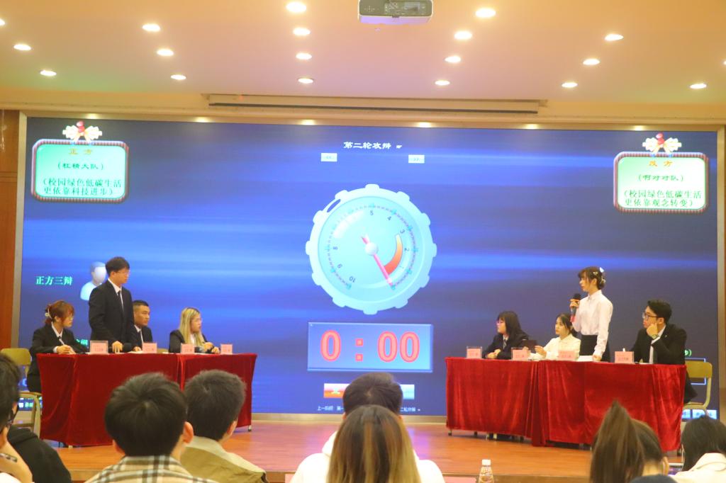本次大赛以视频回顾拉开序幕,决赛冠军争夺赛的辩题是“绿色低碳生活依靠科技进步或观念转变”。台上辩手个个信心十足,在比赛过程中双方唇枪舌战,将整个比赛带入一个又一个高潮。