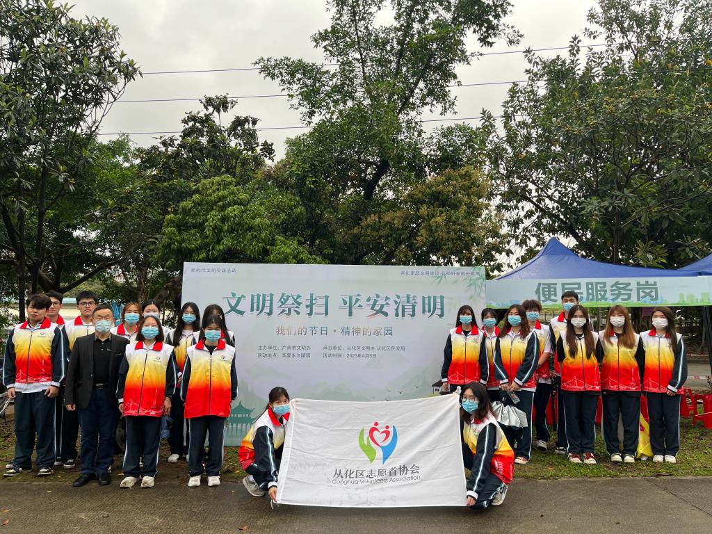 为进一步做好2023年度清明节祭扫指引服务,在从化区新时代文明实践中心、从化区民政局指导下,从化区志愿者协会发动招募,广州城建职业学院外语外贸学院积极响应,学院学生踊跃报名,约100名青年学生志愿者共同参与为期4周的华夏陵园清明节文明祭扫志愿服务活动,为群众提供更安全、更高质量、更有温度的祭扫服务。