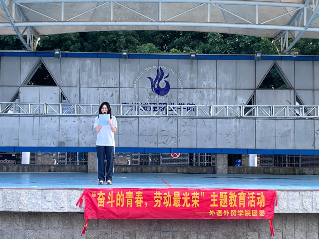 升旗仪式之后,21级学生代表郑依柔上台以“弘扬劳动精神,激扬青春力量”为主题的演讲。她现身说法,告诫同学们要树立劳动最光荣的意识,用青春的力量,从现在做起,从小事做起,体验劳动、热爱劳动,做新时代的劳动先锋。