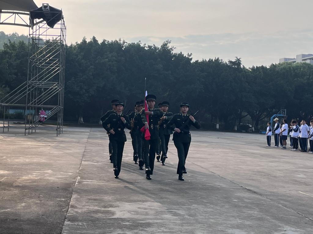 早上7点整,在激昂的《义勇军进行曲》中,升旗手振臂一挥,鲜艳的五星红旗徐徐展开,在初升的阳光映照下、全院师生的注目中,迎着初升的太阳,在晨曦中迎风飘扬在城建学院上空。