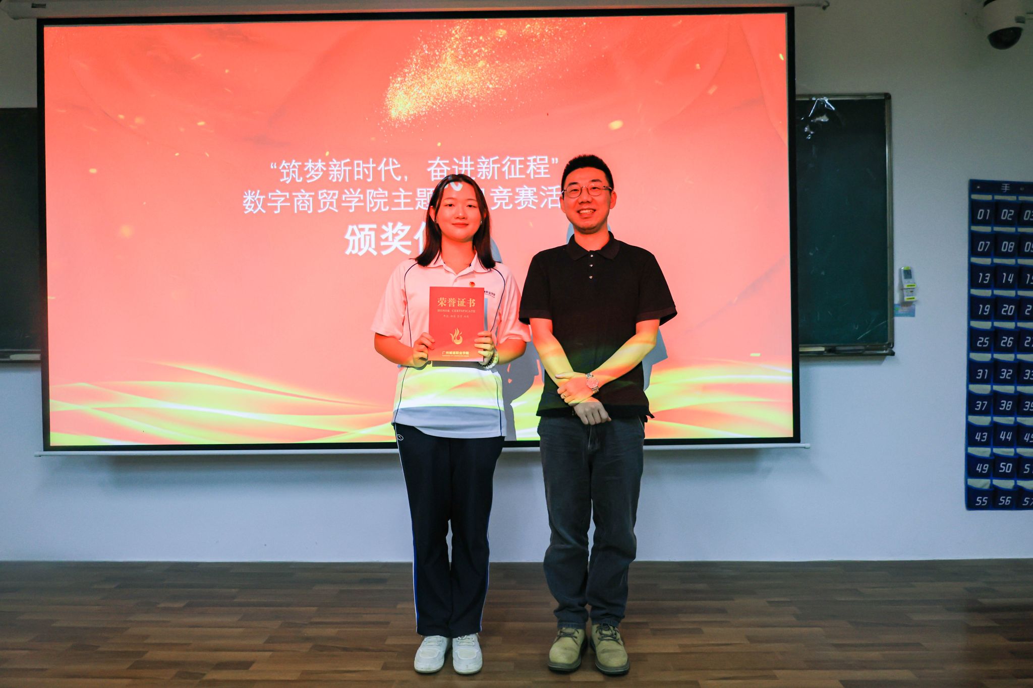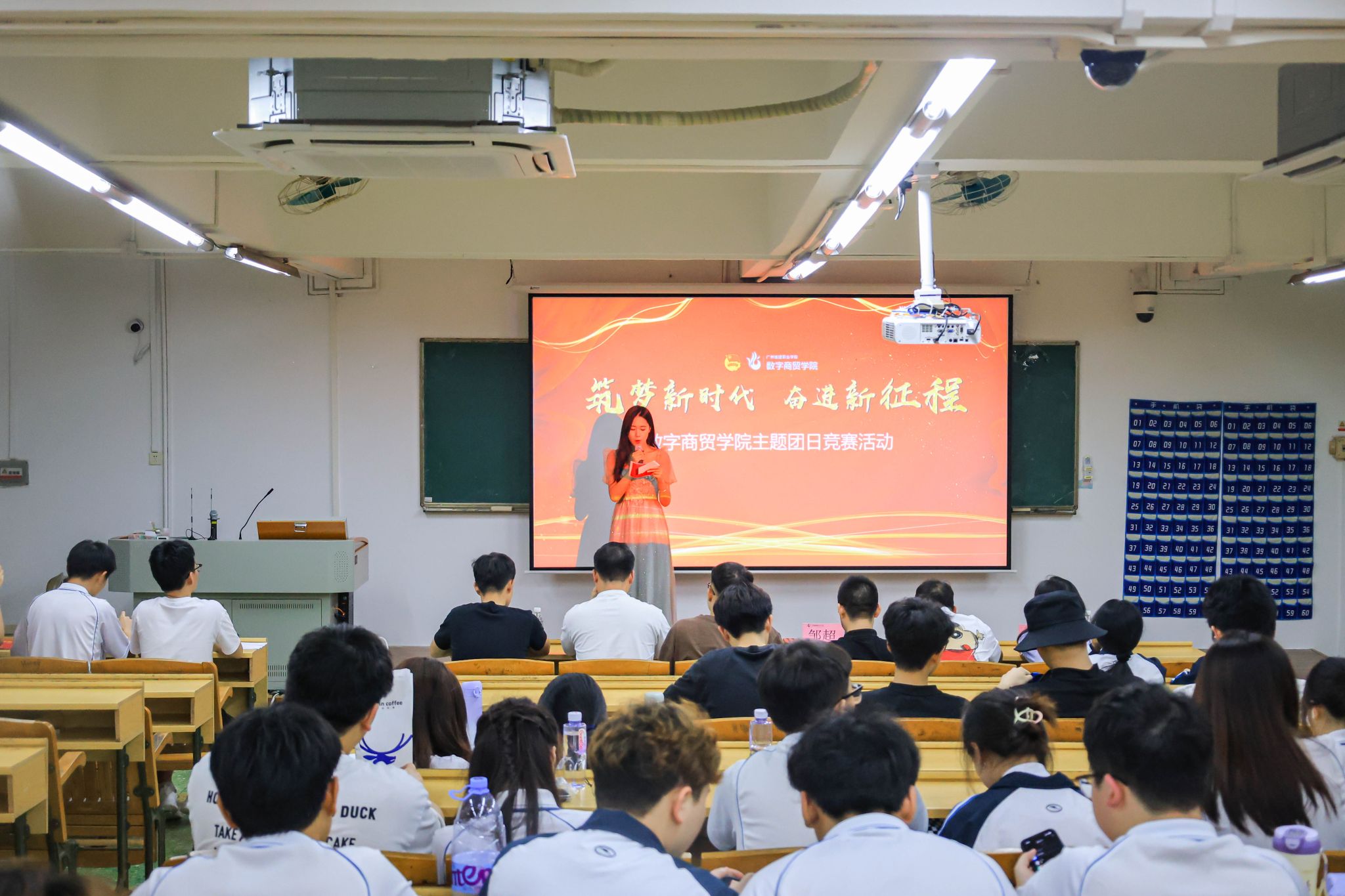 2024年5月23日晚,数字商贸学院“筑梦新时代,奋进新征程”主题团日活动竞赛决赛在人文艺术楼1405圆满落幕,学院党委副书记,副院长邹超、团委书记邹鹏和学工办全体辅导员出席参加。