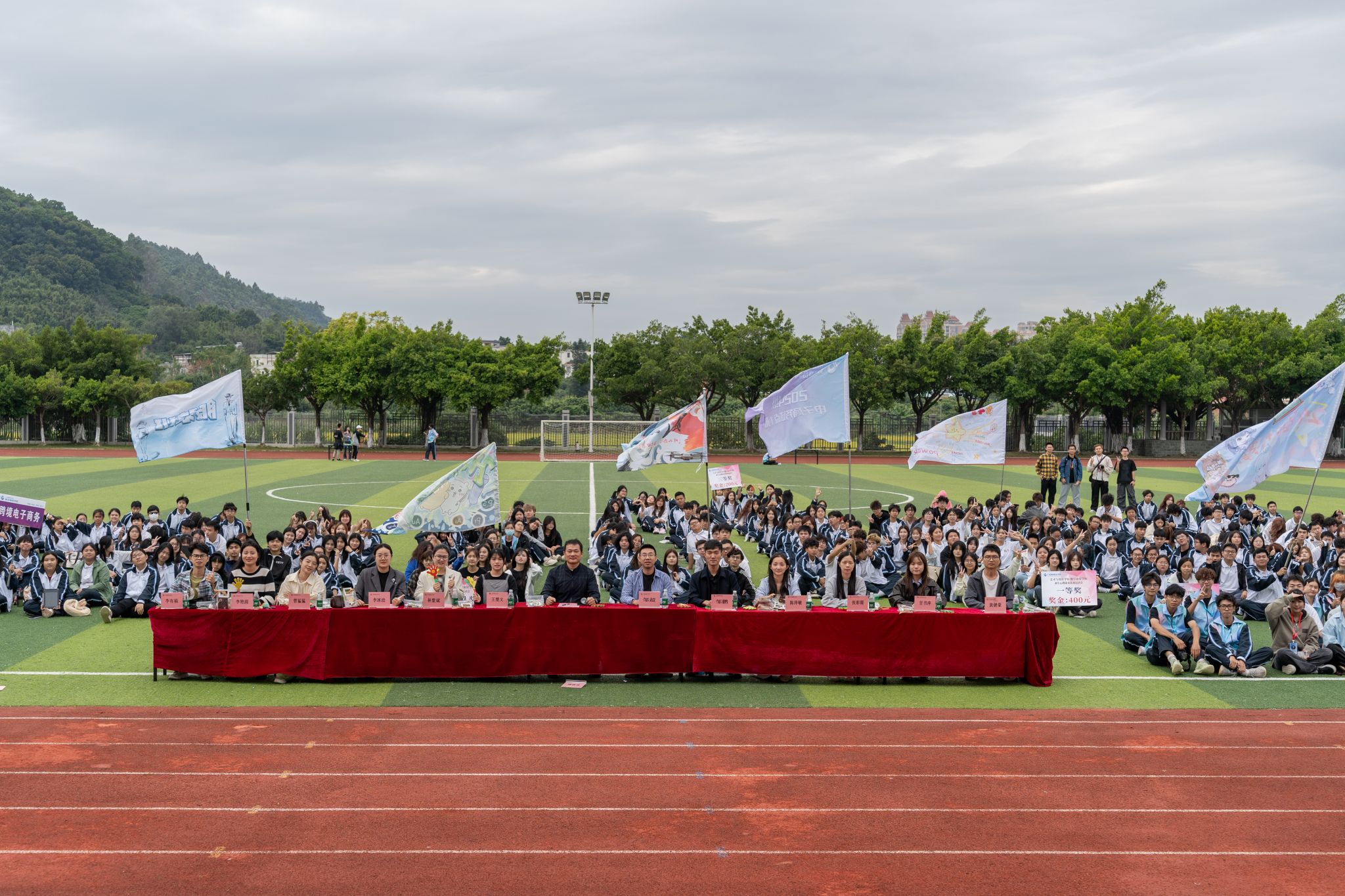 运动会在热烈的氛围中拉开帷幕,首先进行的是班级风采展示环节。各班级的新生们犹如初升的朝阳,充满激情与创意,他们以饱满的精神状态和独特的表演形式,充分彰显了青春的无限活力与独特风采。数字商贸学院的2024电商试点1班、2024跨电试点班在展示中表现突出,凭借整齐的队列、精彩的创意和昂扬的精神风貌赢得了评委们的一致认可,最终荣获三等奖。而2024电商试点2班也毫不逊色,他们别出心裁的展示同样给观众留下了深刻的印象,荣获优秀奖。在这个环节中,同学们不仅展示了个人才华,更体现了班级的凝聚力和向心力,为班级荣誉而战的决心溢于言表。