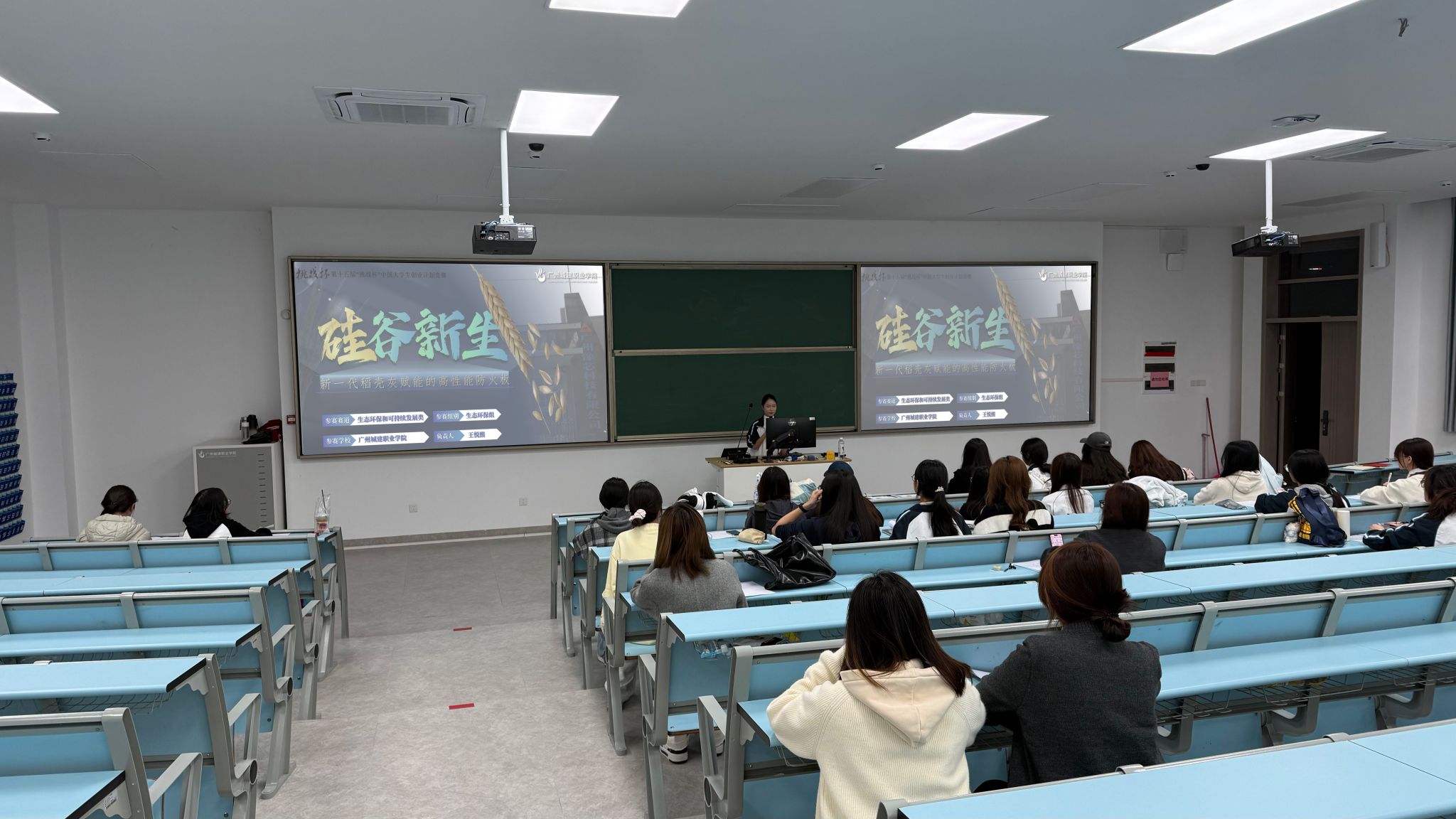 分享会上,首先登场的“硅谷新生——新一代稻壳赋能的高性能防火板”项目团队,详细介绍了项目的研发背景、核心技术与成果转化情况。团队依托稻壳可再生资源优势,通过自主研发的改良工艺,成功制备出高性能防火板,不仅解决了传统防火材料成本高、环保性差的痛点,还实现了农业废弃物的资源化利用。目前,项目已完成小试生产,与多家建材企业达成初步合作意向,展现出广阔的市场应用前景。