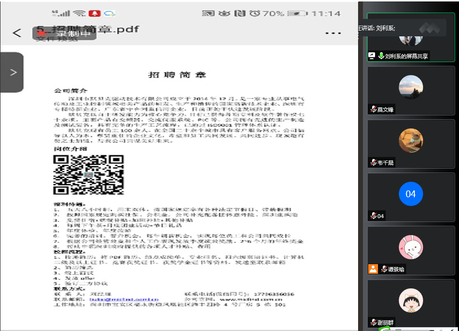 据了解,本次招聘会共邀请了5家企业,提供150多个就业岗位,共200余人参加线上招聘。通过线上直播的方式,招聘企业对企业基本情况、发展前景、招聘条件、招聘岗位等依次详细介绍,随后与同学们进行互动交流,并对同学们所提出的问题进行逐一解答。