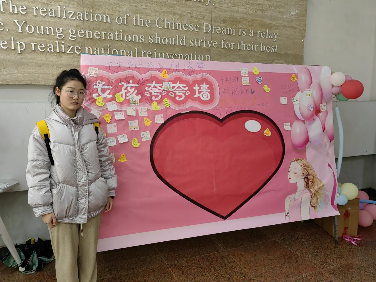 “女孩夸夸墙”和“照”印我们的青春墙两个活动在我校东校区厚德楼一栋一楼举行,女生们在志愿者的引导下领取便利贴和马克笔,写下自己的故事或赞美之词,并贴在展板上,随后在背景墙前拍照留念。在同学们的积极参与下,这面墙被装饰得温馨且充满活力,上面贴满了五颜六色的便利贴。