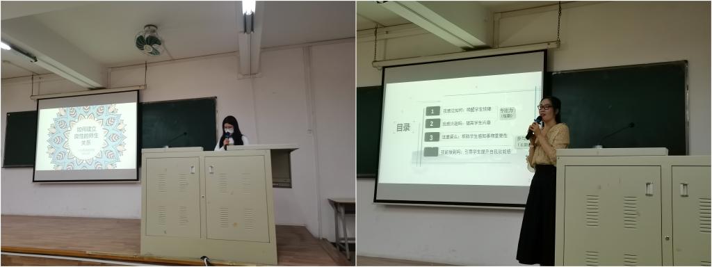 “思享会”上,首先邀请了钟卉妍老师分享“如何建立良好的师生关系”,用好妙招有奇效:师生间共同立规矩、严格执行、民主的同时让课堂更有仪式感;善观察,激发学生上课积极性;与孩子分享生活,拉近师生距离;遵循爱玩天性,通过游戏让课堂更加生动有趣;妙哉!随后,张云瑞老师以“提高学生专注力的沉浸式教学”为主题,从“唤醒学生情绪”“提高学生兴趣”“帮助学生感知事物重要性”“帮助学生提升自我效能感”四个方面分享如何让学生高度参与进课堂里面的经验。