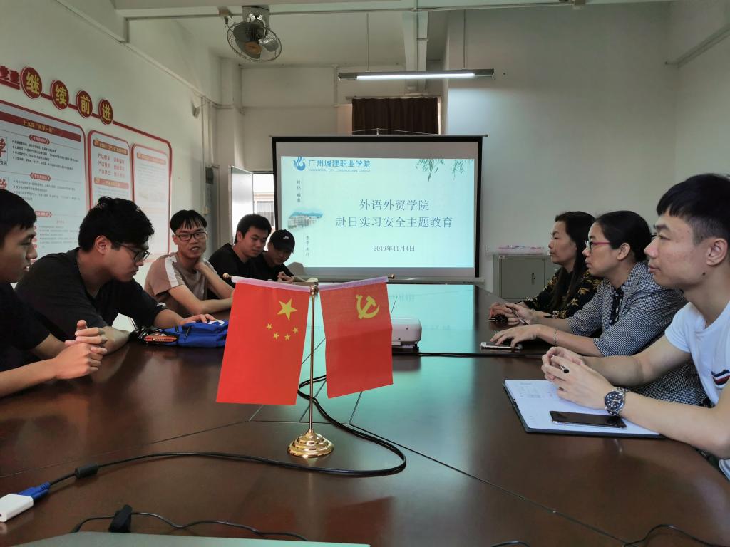 为切实做好赴日实习项目,11月4日下午,外语外贸学院专门针对被日本企业有限会社山の茶屋录用的18级商务日语2班的刘振瀚、胡海童和赖建洋三名学生进行出国前安全教育会议。学院副院长李霜、刘榕敏和外事办邝博文老师出席了会议。