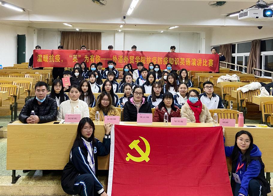 1月7日晚上7点,由外语外贸学院党总支主办,学生党建工作办公室承办的抗疫防疫知识英文演讲比赛在人文艺术楼305顺利举办。外语外贸学院大学英语教研室主任翁翠、班级导师张云瑞、曾铿颖,教师邹雪莲、胡婷,学生党建工作办公室指导老师刘星佐,学生党支部书记陈贤俊,积极分子以及相关专业学生参与了本场比赛。