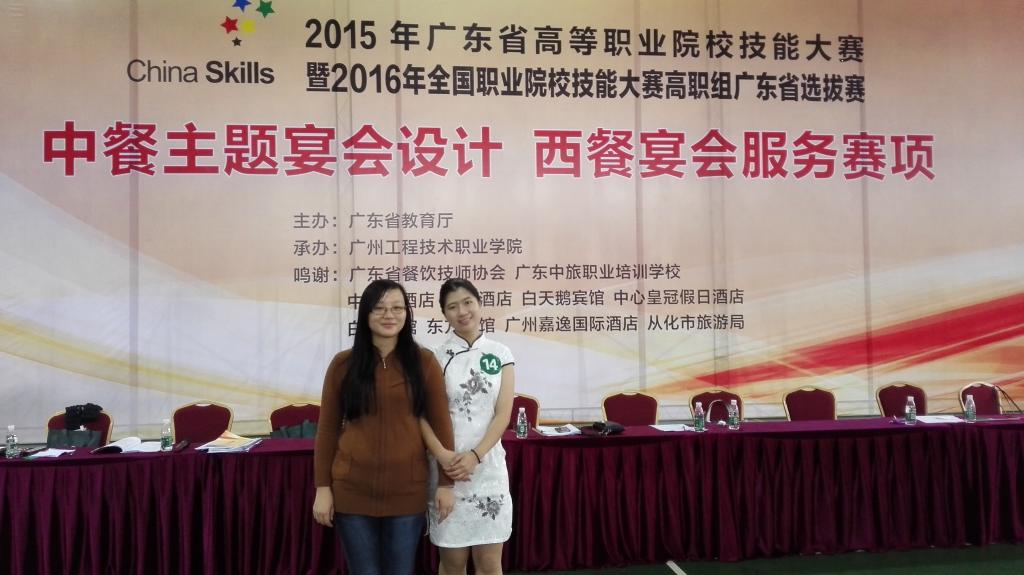2015年广东省高职技能大赛暨2016年全国职业院校技能大赛高职组--“中餐主题宴会设计”广东省选拨赛已落下帷幕,在王璐和冯倩欣两位老师的指导下,外语外贸学院14级酒店管理班陈艳同学的作品《冬季养生宴》、陈娟娟同学的作品《千金百日宴》,双双获得三等奖。