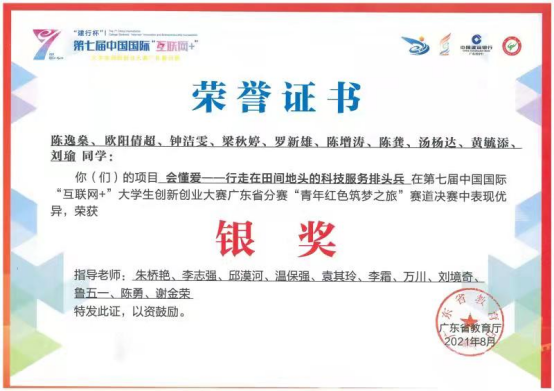 8月25日,我院两支参赛队伍在第七届中国国际“互联网+”大学生创新创业大赛广东省分赛职教赛道决赛和“青年红色筑梦之旅”赛道决赛中分均获银奖。