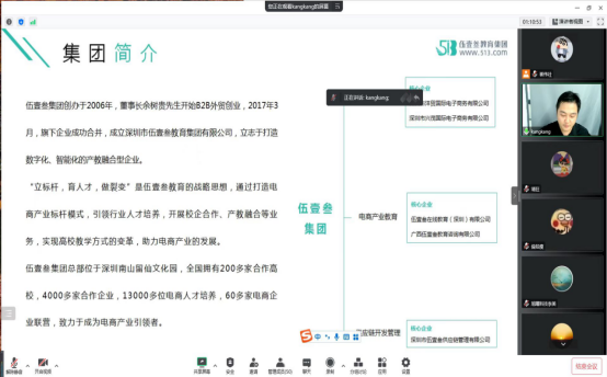 以学生为中心,以就业为导向,外语外贸学院线上专场宣讲招聘会持续进行中!为加强校企合作,做好2020级学生顶岗实习工作,提供更多更好的工作机会,11月23日下午,外语外贸学院联合中山市里奥照明科技有限公司、深圳市伍壹叁数字科技有限公司和广州市旭曜科技股份有限公司等3家企业开展了3场网络宣讲招聘会。