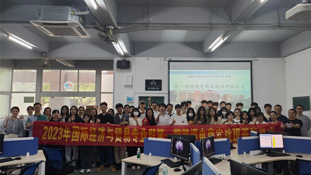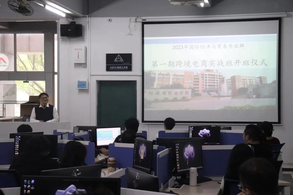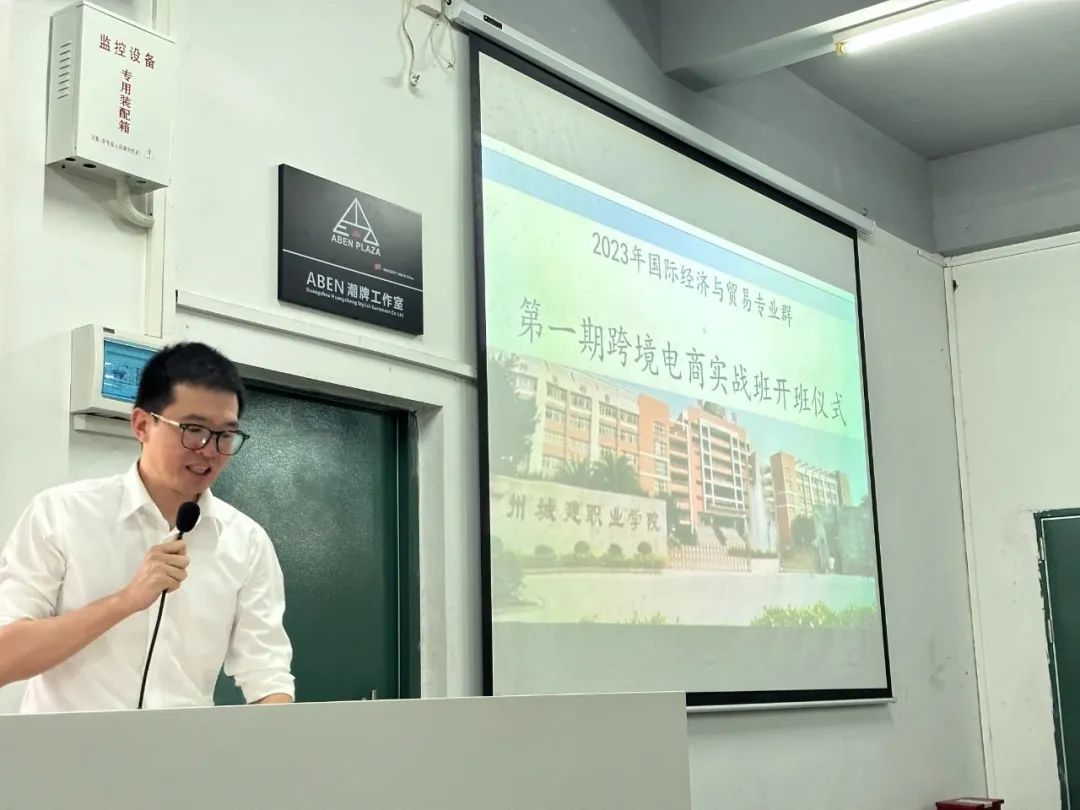 4月13日下午,广州城建职业学院外语外贸学院第一期跨境电商实战班正式开班。外语外贸学院院长李志强、副院长李霜、伍壹叁数字科技有限公司副总裁曾中能及参加实战班的同学们共同参与了第一期的开班仪式。