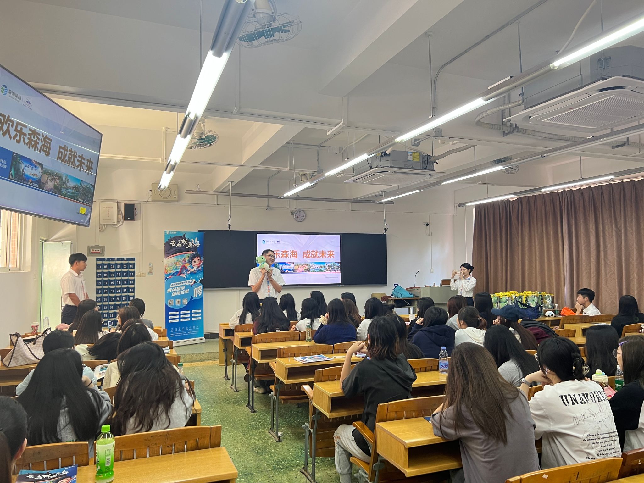 广东森海投资控股集团有限公司陈雄伟主管首先以视频的方式展示了公司的办公环境、团队氛围以及员工成长路径。其次,他讲述了公司的用人制度、卓越管理和创新理念,介绍了公司的业务板块和发展战略。同时,他提到会展行业迎来了前所未有的发展机遇,公司急需大量具备专业素养和创新能力的会展策划与管理等专业人才。他鼓励在座的毕业生要敢于梦想、勇于实践,积极投身于公司的广阔天地。