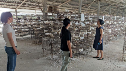 我院教师吕海燕与广东白云学院农村科技特派员团队及广东温氏食品集团丰顺公司的生产部负责人一共走访了汤西镇新岭村的现代养鸡场和汤南镇的肉鸽生产基地、鳗鱼养殖场,并与上述两个养殖场的技术员进行沟通和交流。就肉鸽饲养环境的清洁、鳗鱼经济效益的前景进行了讨论。