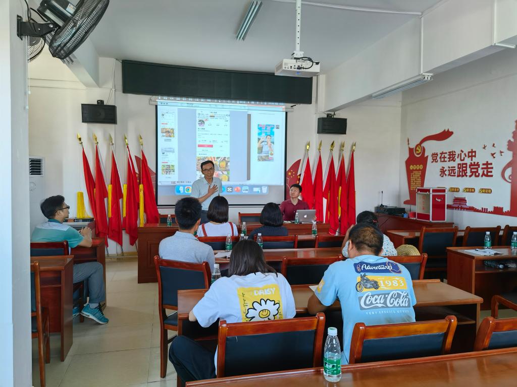特派员小组依据前期调研的乡村经济发展情况,针对性的邀请了擅长电子商务营销方面的企业参与进来,普及有关抖音直播方面的知识,注重乡村振兴中的“造血”效应,着力提升农户的自我发展意识。同行企业专家来自于校企合作单位——广东萌客网络科技有限公司。该公司于2022年被评为广东省第二批产教融合型企业,是一家以大数据驱动数字化运营的电子商务公司。简效良、何明仔两位同志作为该公司抖音直播以及项目运营方面的专家,具有十分丰富的电商营销与运营经验,在培训过程中讲授了大量实用的抖音运营技巧和经典案例,深受农户喜爱。