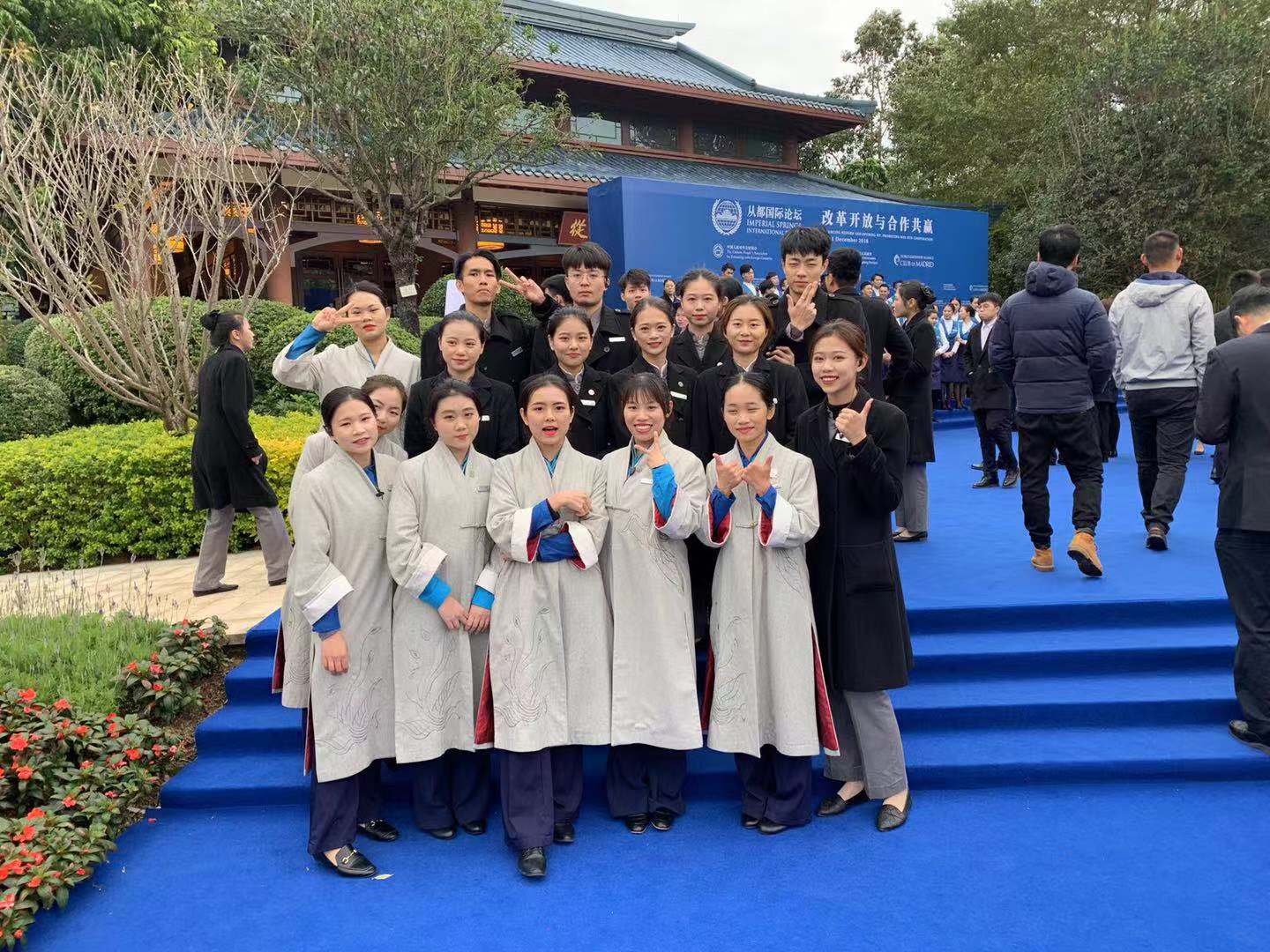 峰会论坛结束后,从都国际庄园为了表示对志愿者们工作的认可和感谢,还举办了一场盛大的实习答谢会。会上我校志愿者代表参加了表演活动,并收获了由企业颁发的志愿者证书。